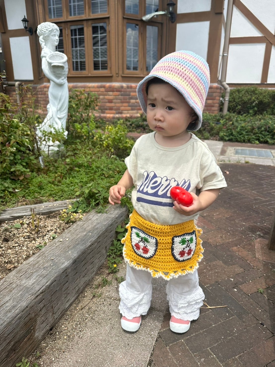kids crochet apron (cherry) クロシェエプロン
